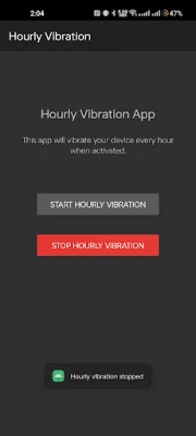 app will remind by vibrating the device every hour at a set time based on start time