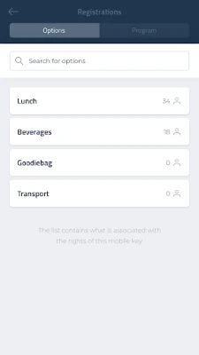 - Scan/register participants upon arrival as well as departure - Register participant information and add your own comments - Print / export the list with registered leads (via CM external login) - Rights management fully controlled by the organizer - Overview of the number of participants