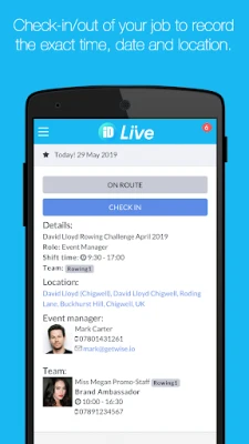 - Check in & out of shifts directly within the app