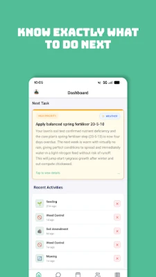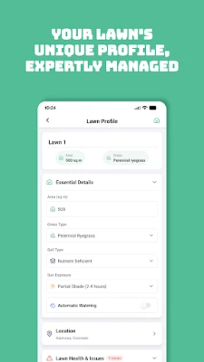 - Set up your custom lawn profile with details about your grass type, location, and soil conditions