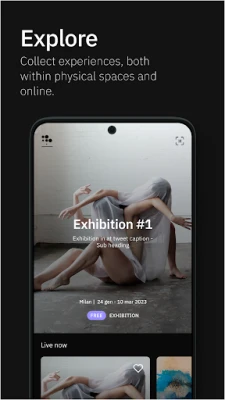 Wander through the Particles: Lose yourself in the never-ending flow of particles: immerse into curated stories to discover the art world at your own pace. Explore events and exhibitions Browse exhibitions from your favorite institutions, galleries and artists or discover unexplored ones, support their activities, and take part in their events. Live an augmented art experience Explore phygital and digital exhibitions with no limits of location and timing. Interact with the artworks around you and dig deeper into the exhibition topic. Share what made you fall in love, and empower the art community