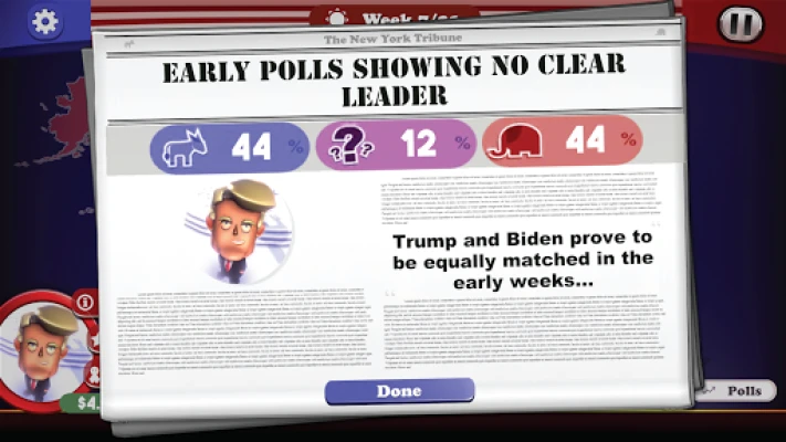 * Manage your Campaign Budget - Purchase advertisements, travel across the country to campaign, and hire operatives to enhance your PR or cripple your opponent. Be wary - if you overspend and need extra cash, it might come from somewhere that will shake voters’ confidence in you!