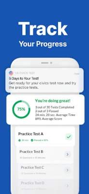 We provide an extensive platform for thorough practice to help you ace your US Citizenship Test 2025. Study systematically chapter by chapter, and attempt more than 300 questions at the end of each lesson. Practice tests help you evaluate your knowledge while feedback on correct and incorrect answers enhance your learning process.