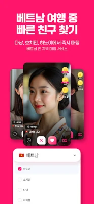 근처에 있는 베트남 친구들과 즉시 매칭하고, 핫플 추천도 받고, 대화도 나누고,